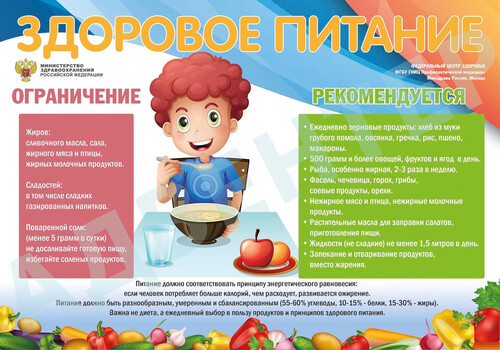 Памятка по организации здорового питания для детей и подростков